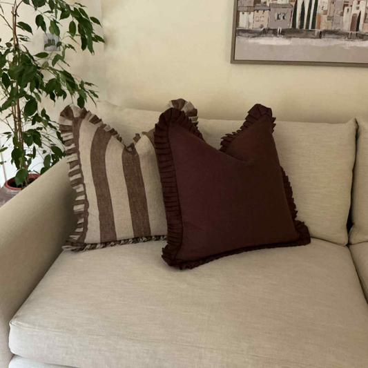 Regular price £39.99 GBPRegular priceUnit price / per£39.99 GBPSale price £39.99 GBPGreige Brown Stripe Cushion with Frill - 100% Linen