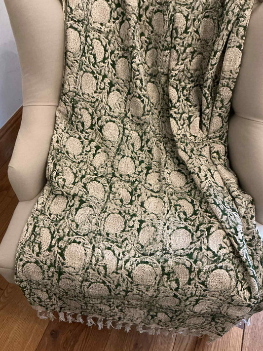 FLORA Rustic Hand Block Printed Throw - Forest Green