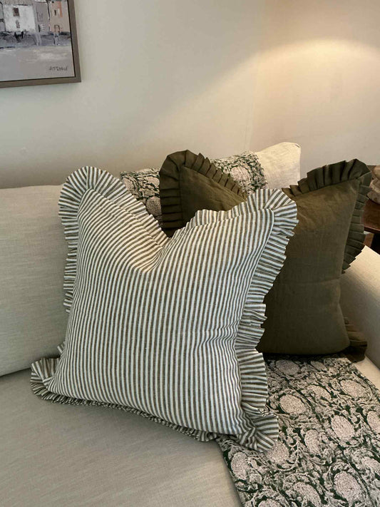 Regular price From £27.95 GBPRegular priceUnit price / perSale price From £27.95 GBPOlive Green Cushion with Frill - 100% Linen
