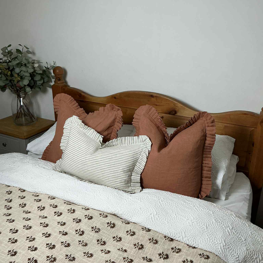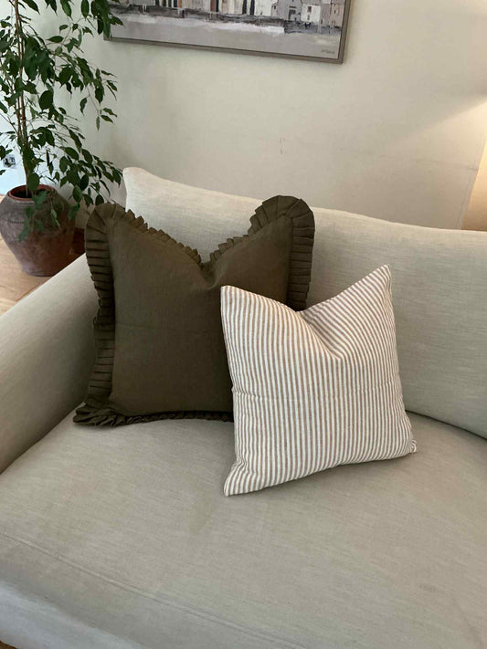 Regular price From £27.95 GBPRegular priceUnit price / perSale price From £27.95 GBPNatural Stripe Cushion with Frill – 100% Linen