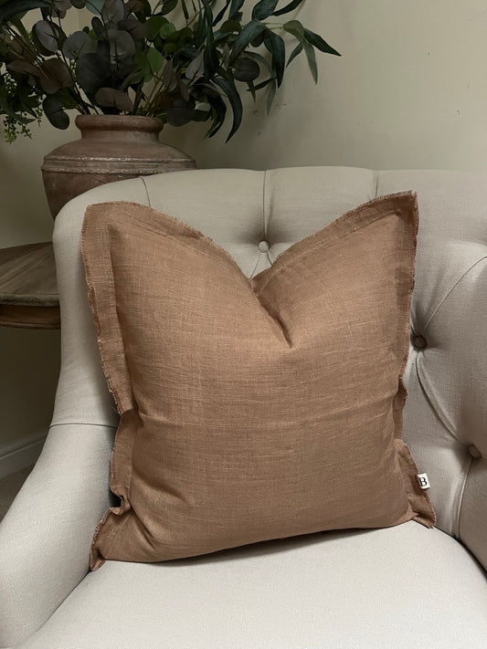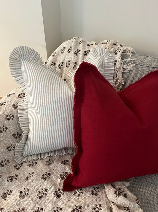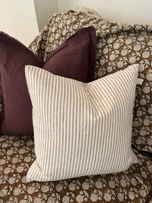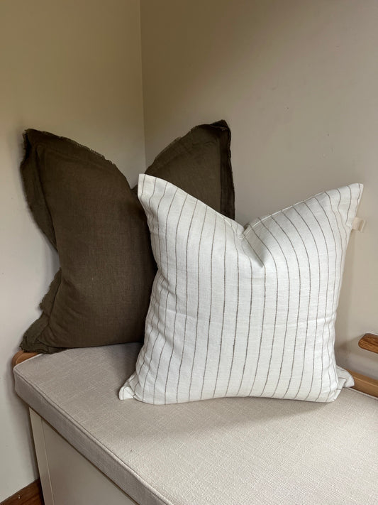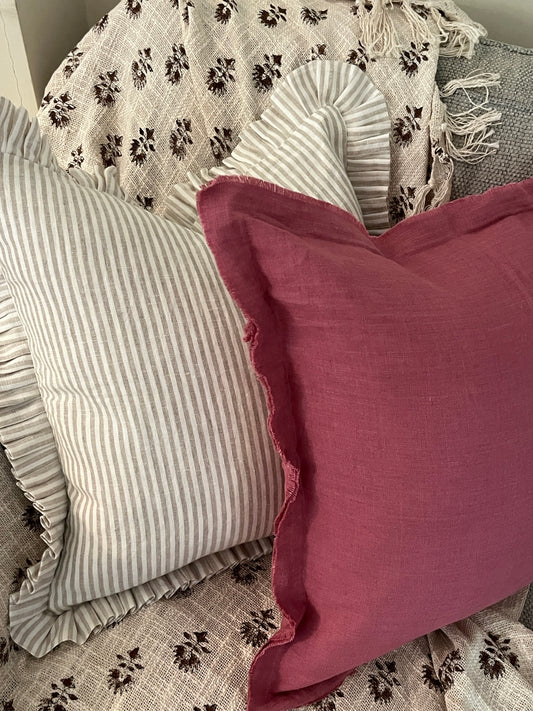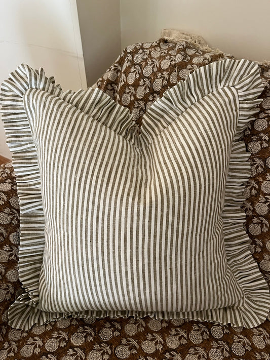 • Woodland Stripe Cushion with Frill – 100% Linen