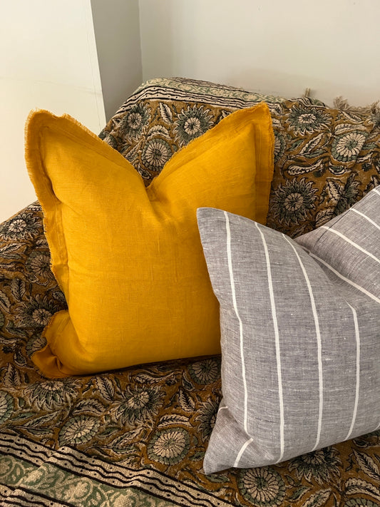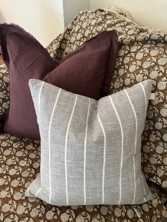 • Grey & Navy  Stripe Cushion – 100% Linen