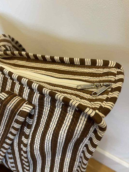 MAY Hand Block Printed Tote Bag - Brown Stripe