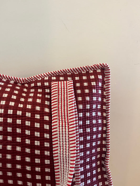 MULBERRY CHECK Hand Block Printed Tote Bag