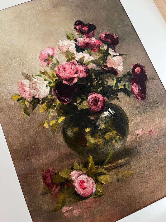 Vintage Vase of Roses Art Print (A4 or A3)