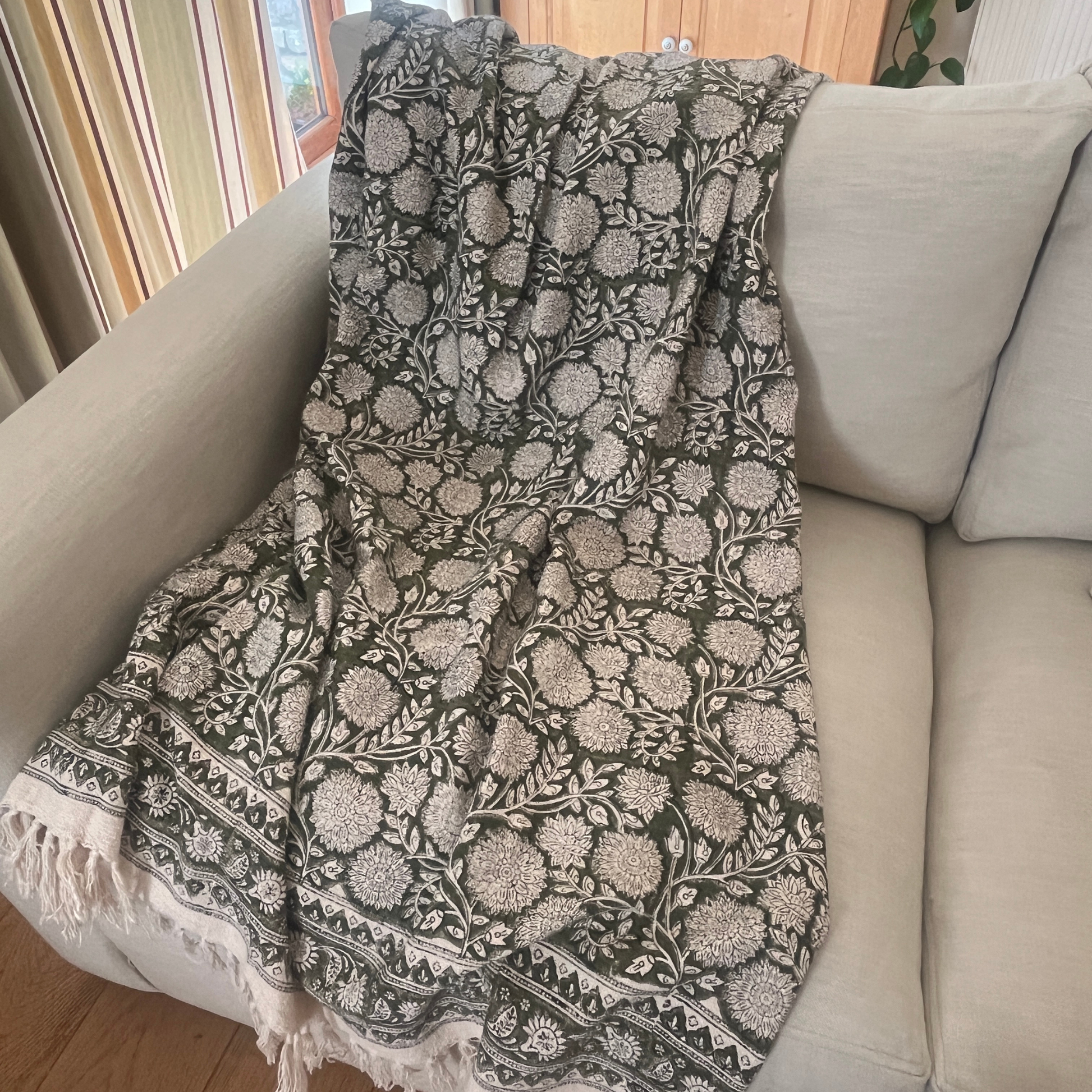 EMILY Hand Block Printed Throw - Olive Green