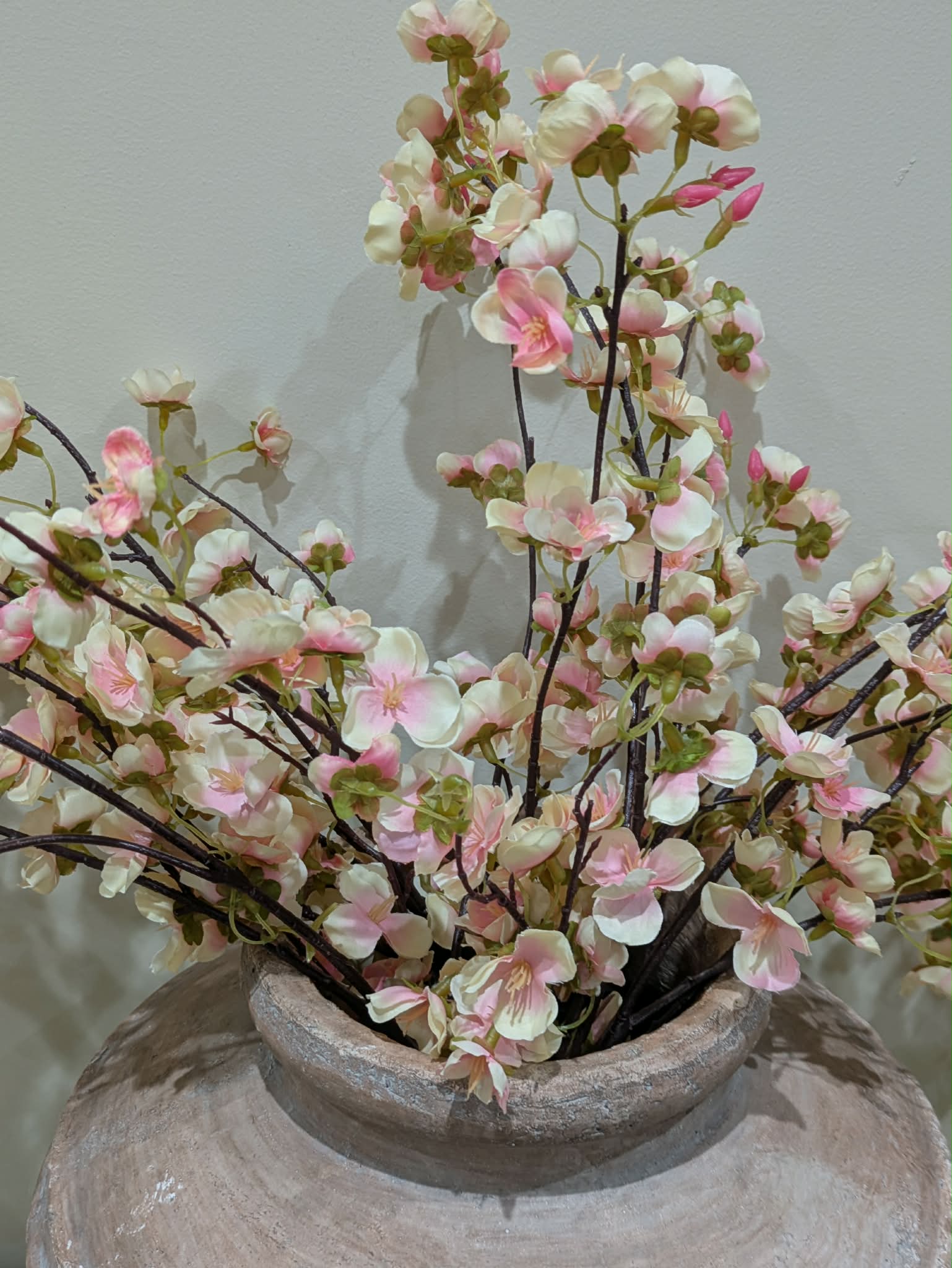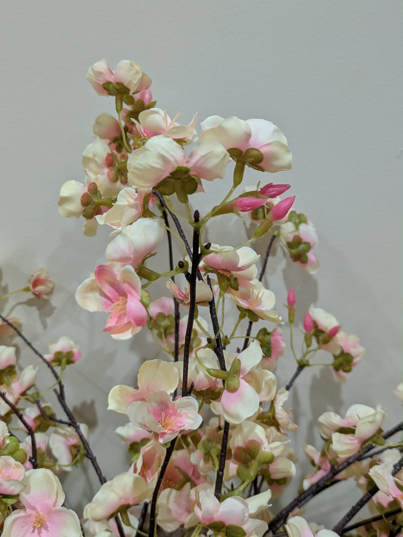 These large cherry blossom spray stems feature soft silk flowers and flexible, wired stems that can be shaped with ease. This design is slightly less rigid than some of our other blossom stems, making it ideal for creating gentle trailing arrangements, flower arches, or flowing installations.