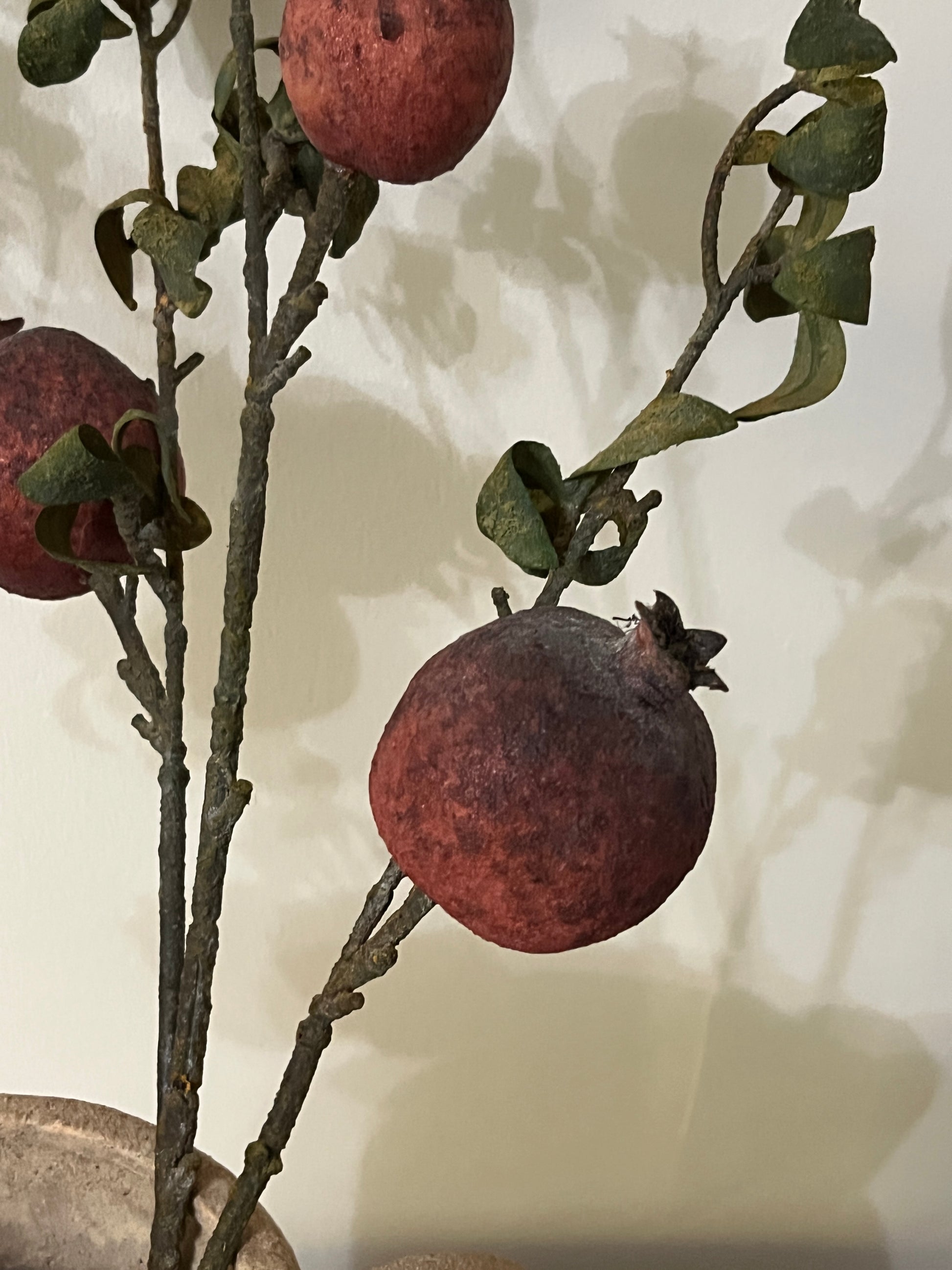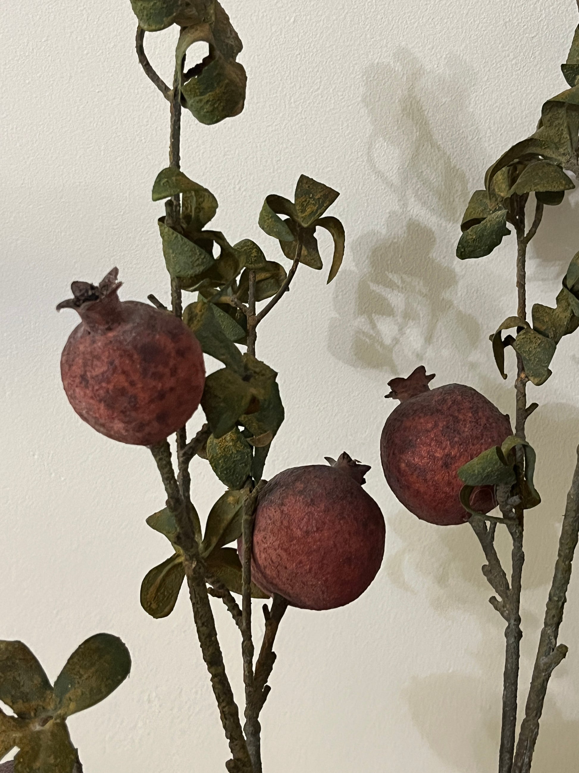 Add a touch of natural elegance to your space with this Faux Pomegranate Stem. Featuring realistic foliage and lifelike pomegranate fruits, it brings vibrant color and texture to any floral arrangement or décor. Durable and maintenance-free, it’s perfect for enhancing your home or office with a fresh, organic look all year long.