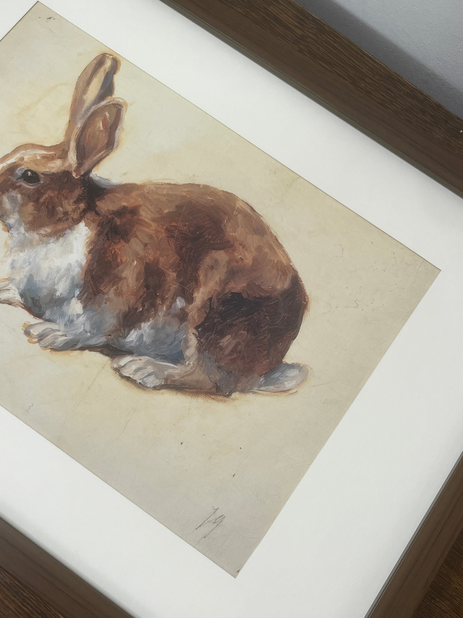 This charming portrait captures the gentle stillness of a rabbit at rest, rendered in warm, earthy tones and soft, expressive brushstrokes. The delicate detailing of its fur and the subtle shading bring a quiet sense of life and character to the piece, making it both intimate and timeless. This print has been digitally remastered to enhance its detail and tonal richness, and is professionally printed onto high-quality card for a refined, lasting finish.