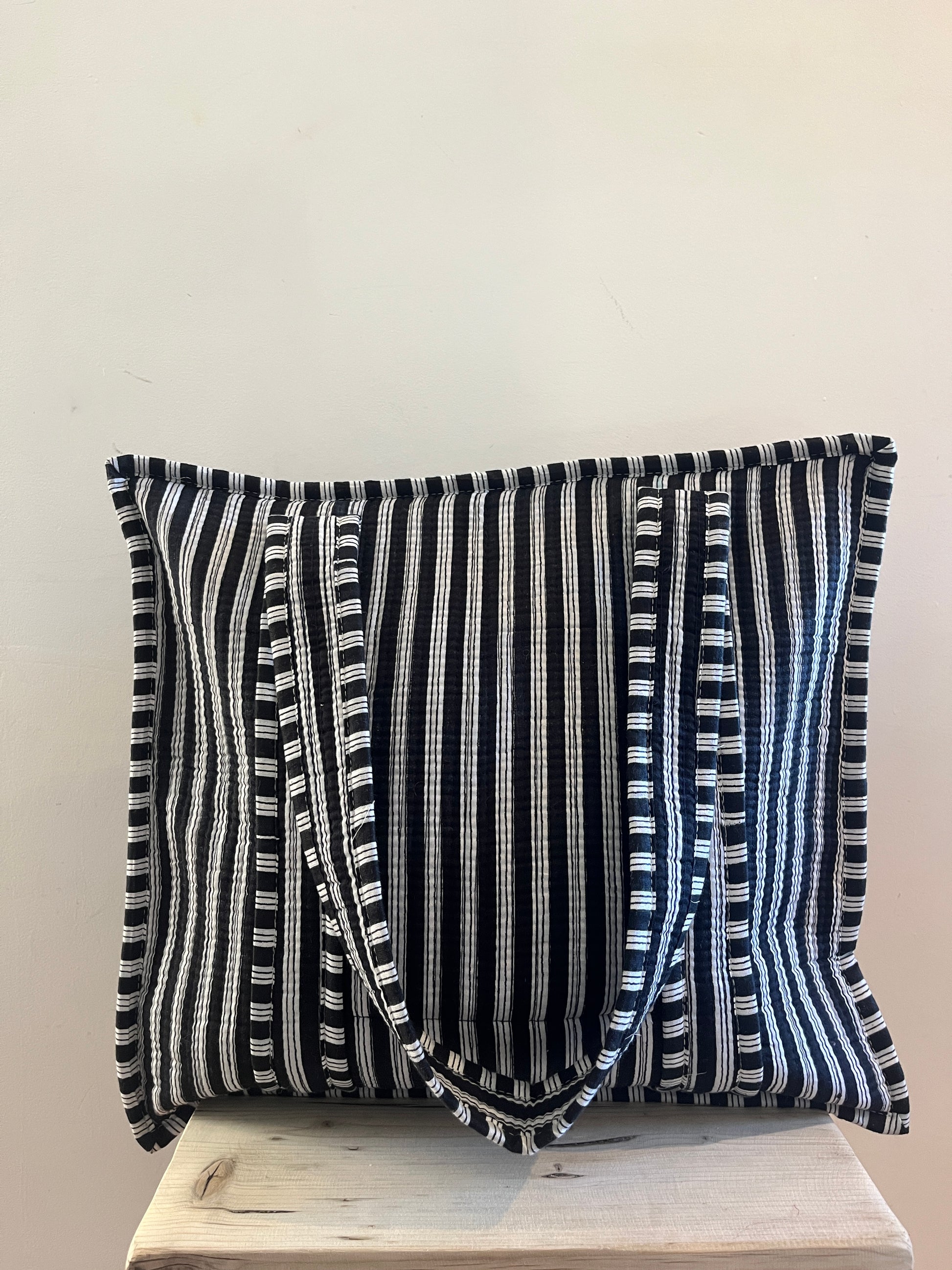 MAY Hand Block Printed Tote Bag - Black & White Stripe